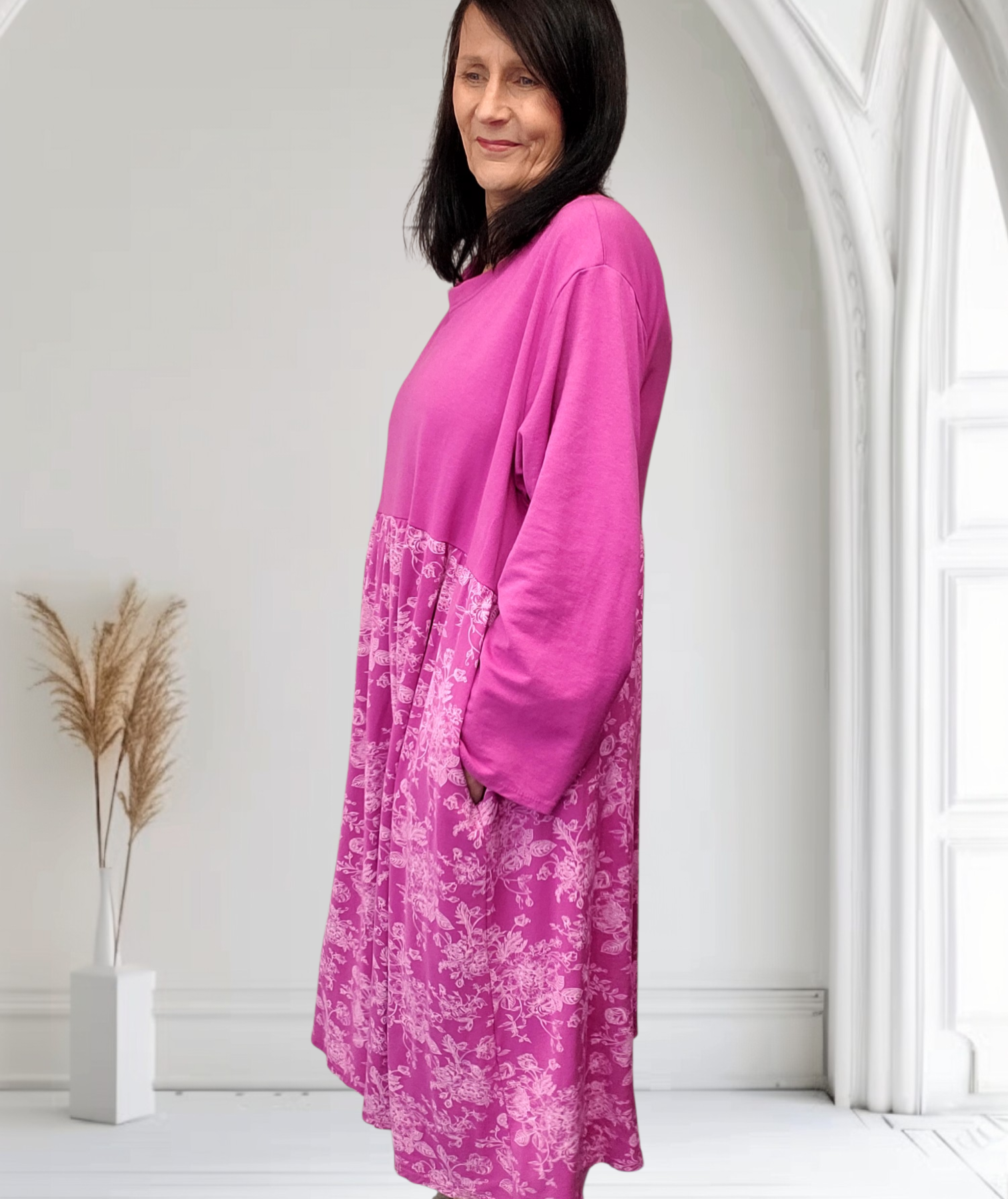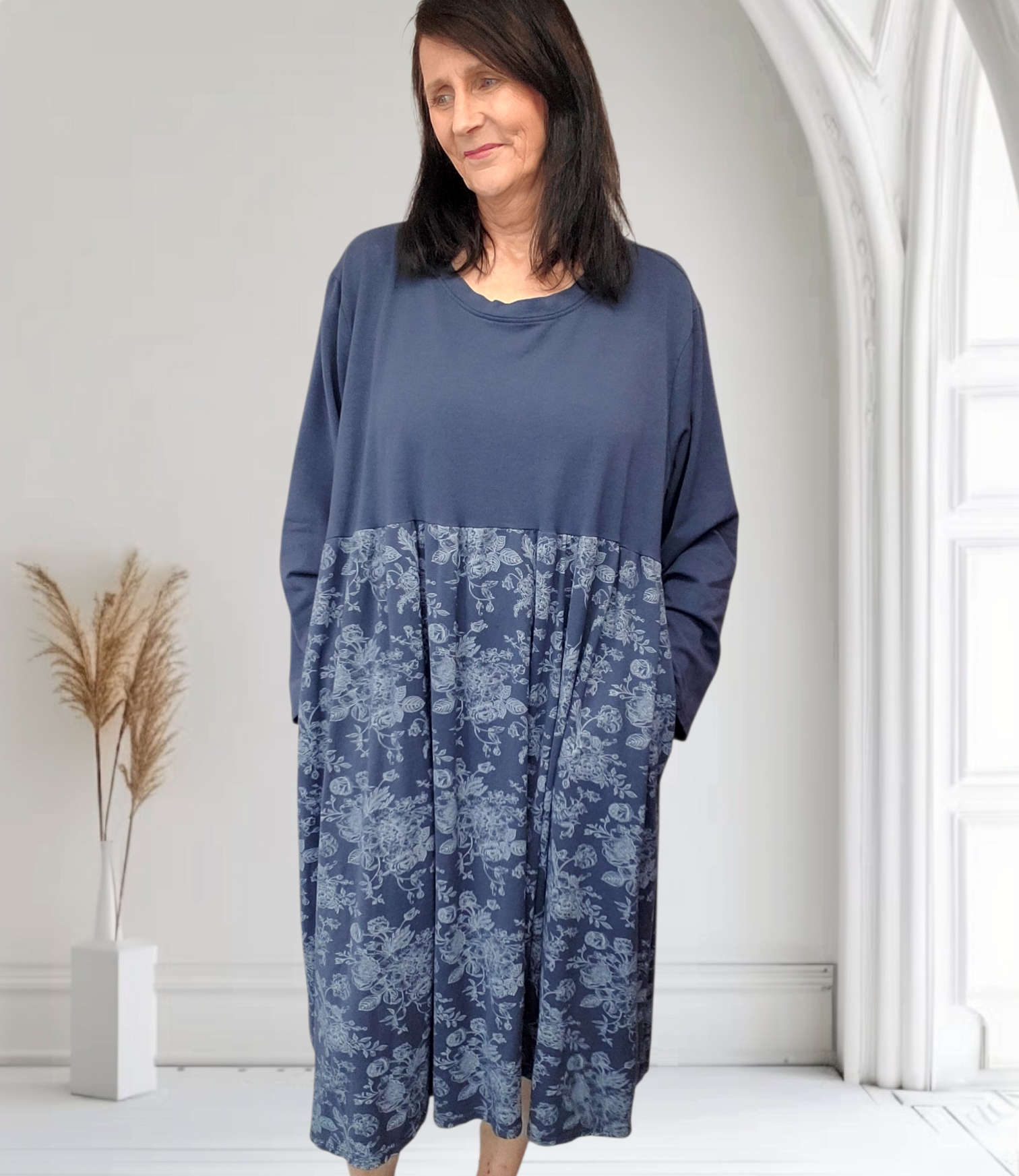 Featuring long sleeves and practical side pockets, this dress is as functional as it is stylish. Wear it loose for a relaxed, laid-back look, or add your favourite belt to create shape and definition (belt not included) – perfect for adjusting the fit to suit your frame.