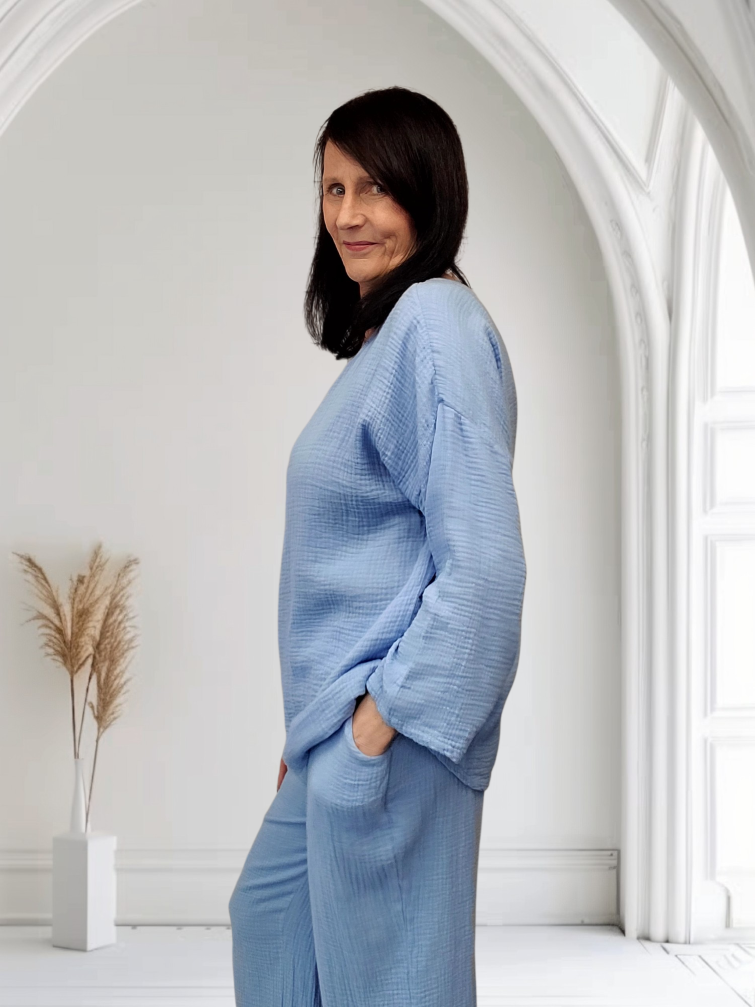 Refresh your wardrobe with our beautifully designed Pleated Front Long Sleeve Top – the perfect blend of comfort and versatility. Featuring a flattering pleated front detail and adjustable long sleeves that can be buttoned up for a lighter summer look, this top is made to take you from season to season with ease.