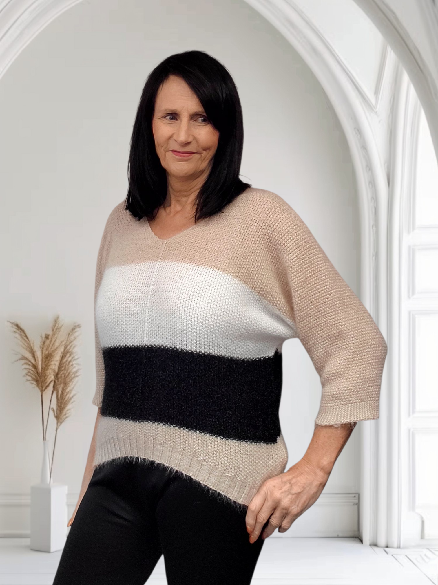Style it with: high-waisted jeans, a midi skirt, or tailored trousers for a polished yet cozy look.